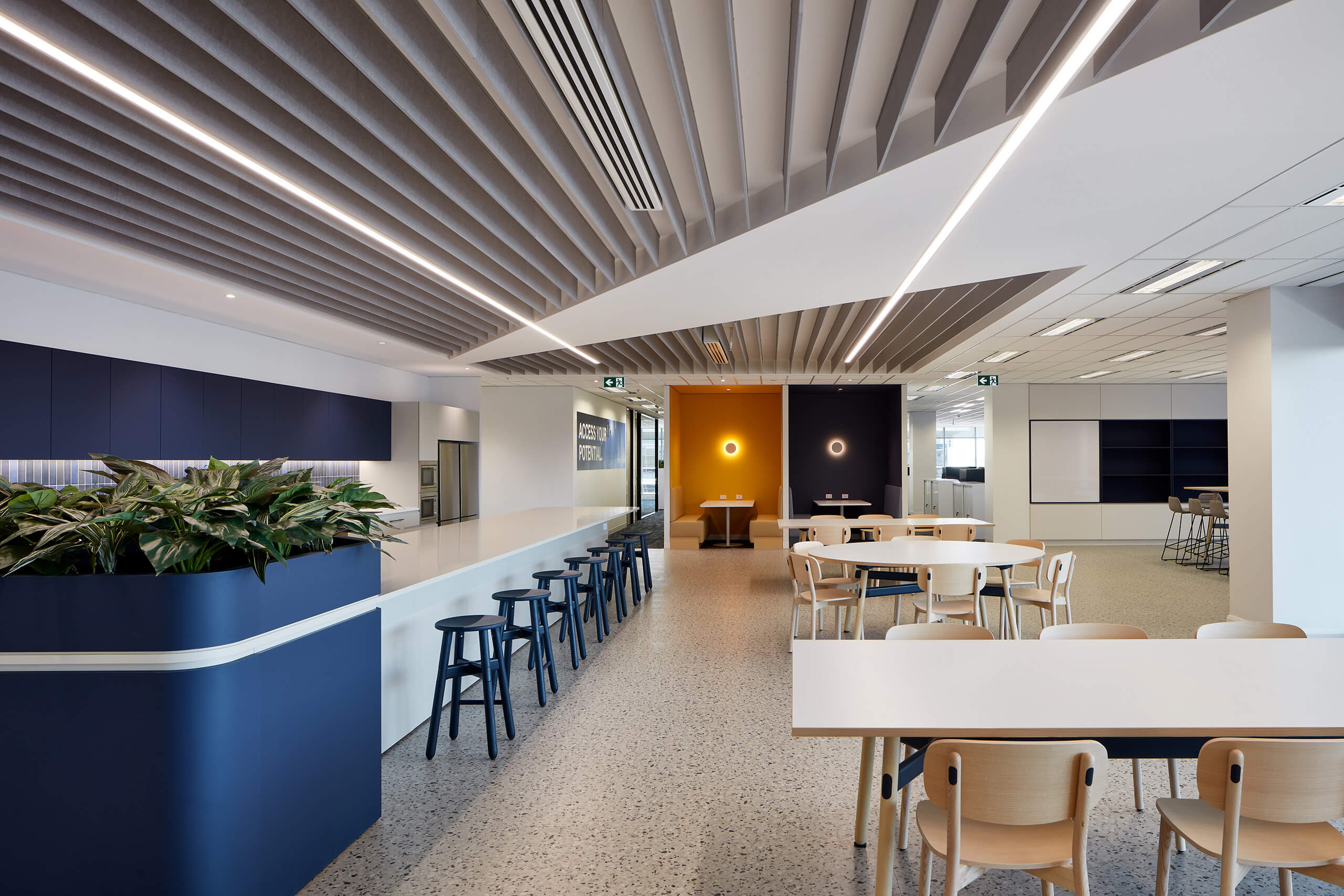 The large breakout is the heart of the workplace, designed to be both welcoming and practical, with space for socialising and informal meetings.
